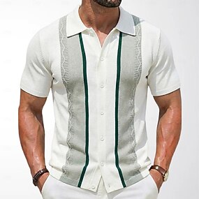 Pánské Košile Košile pro volný čas Košile na knoflíky Bílá Krátký rukáv Bez vzoru Proužky Košilový límec Ležérní Denní Přední kapsa Oblečení Elegantní Módní Na běžné nošení