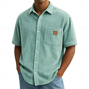 Pánské Košile na knoflíky Košile pro volný čas Kordurová košile Černá Žlutá Hnědá Trávová zelená Krátké rukávy Bez vzoru Klopa ulice Dovolená Základní Oblečení Módní Pro volný čas