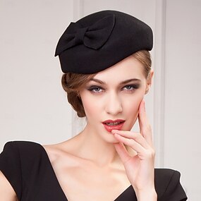 Klobouky 100% vlna Baret Klobouk podšálek Svatební Čajový dýchánek Elegantní Svatba S Mašle Čistá Barva Přílba Pokrývky Hlavy