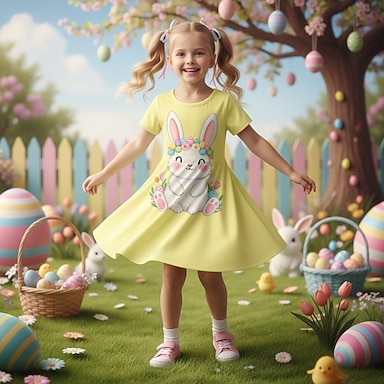 Velikonoce Girls ' 3D Květinový Grafika Králíček Šaty Krátký rukáv 3D tisk Léto Jaro Denní Dovolená Párty Roztomilý Základní Na běžné nošení Děti 4-12 let Volnočasové šaty Áčkové šaty Délka ke kolenům