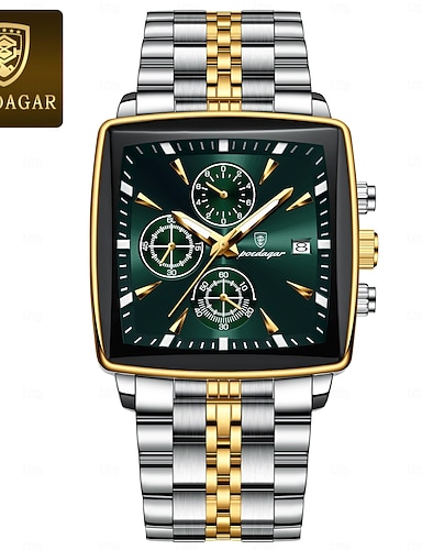 866 zbrusu nové pánské hodinky z nerezové oceli s hranatým vzorem, multifunkční, luminiscenční, vodotěsné, quartzové náramkové hodinky pro firmy