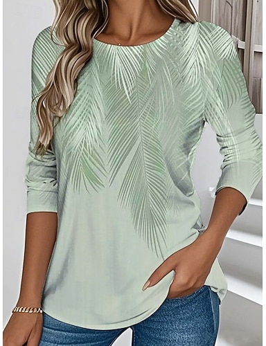 Dámské Tričko Tisk Květinový Grafika Rostliny stylové Klasické Moderní Dlouhý rukáv Tričkový Běžné topy Denní Víkend Oblečení na dovolenou Vodní modrá Světlá růžová Námořnická modř Trávová zelená Šedá