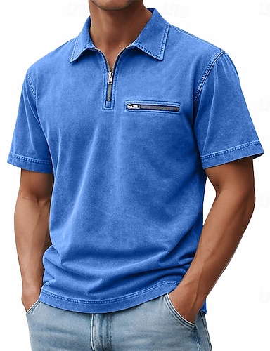 Pánské Pólo Polokošile Ležérní ulice Klopa Krátký rukáv Základní Moderní Bez vzoru Lehká váha Knoflíky Léto Jaro Slim Vodní modrá Bílá Béžová Pólo