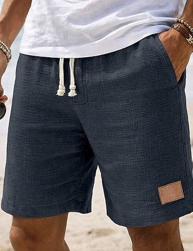 Pánské Kraťasy Lněné šortky Letní šortky Plážové šortky Šňůrky Kapsy Elastický pas Bez vzoru Jednobarevné Lehká váha Prodyšné Délka kolen Plážové Dovolená Módní Šik ven Vodní modrá Černá Neelastické