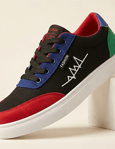 Pánské černé, červené, modré, barevné bloky, ležérní tenisky se šněrováním, lehká streetwear obuv pro každodenní nošení, cestování, víkendové outfity, outdoorové aktivity, mládežnickou módu a trendy ležérní styl.
