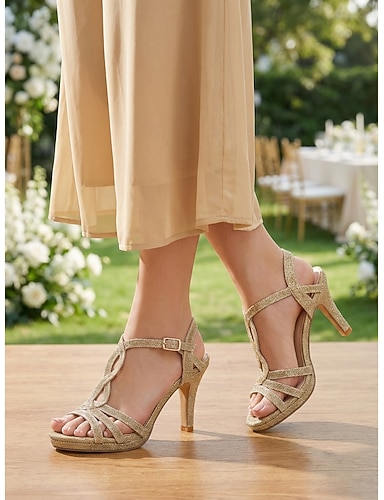 Dámské zlaté třpytivé páskové sandály na vysokém podpatku, elegantní společenské boty s otevřenou špičkou pro svatební hosty, zahradní svatba &formální události