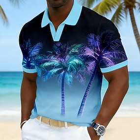 Pánské Palma Havajské polokošile Krátký rukáv Polo tričko Do V Na běžné nošení Letovisko Oblečení na atletiku Denní nošení Oblečení na dovolenou 3D tisk Jaro léto Vodní modrá Fialová Trávová zelená