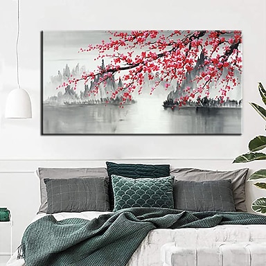 olejomalba ručně malované ručně malované nástěnné umění abstraktní švestkový květ moderní černá a bílá krajina domácí dekorace natažený rám připravený k zavěšení