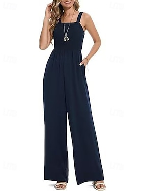 Dámské Běžný Kombinéza Aktivní Pevná barva Bez rukávů Široké nohavice Hranatý Kapsy Denní Dovolená Volný Černá Fialová Námořnická modř Léto