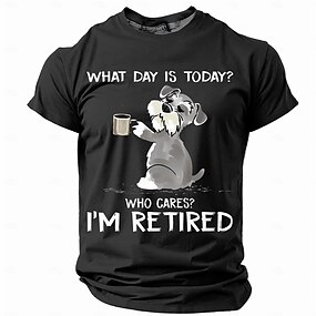 Pánské tričko k důchodu s krátkým rukávem se grafikou knírače - 'Který den je dnes Na tom nezáleží Jsem v důchodu' Vtipné životní tričko