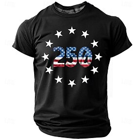 4. července 2026 250. den památky Pánské 3D tisk tričko s americkou vlajkou kulatý výstřih krátký rukáv Denní ulice