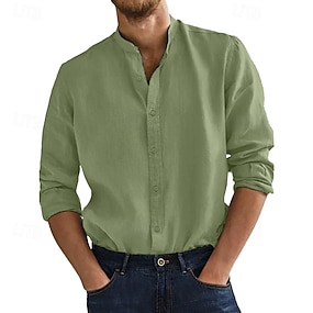 Pánské Spád Vlny Košile Košile s límečkem Dlouhý rukáv Na běžné nošení Dovolená Denní nošení Jdeme ven Jaro Podzim Stojáčkový límec Kulatý límeček Tlačítko dolů Len jako košile Trávová zelená