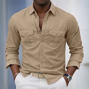 Pánské Košile Letní košile Košile pro volný čas Plážová košile Košile na knoflíky Černá Bílá Nebeská modř Khaki Šedá Dlouhý rukáv Bez vzoru Klopa Dovolená Havajské Kapsy Oblečení 100% bavlna Módní Na