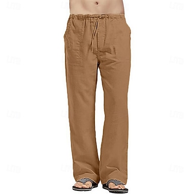 Pánské Plátěné kalhoty Kalhoty Letní kalhoty Plážové kalhoty Šňůrky Elastický pas Straight-Leg Bez vzoru Lehká váha Prodyšné Plná délka Ležérní Denní Dovolená prázdniny Módní Σκούρο Χακί Černá