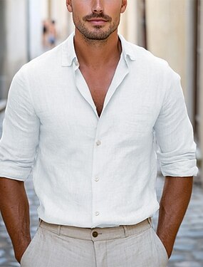 Pánské Lněná košile Letní košile Oblečení na pláž Košile pro volný čas Košile na knoflíky Bez vzoru Dovolená Ležérní Černá Bílá Růžová Vodní modrá Dlouhý rukáv Klopa Jaro léto Oblečení Klasika