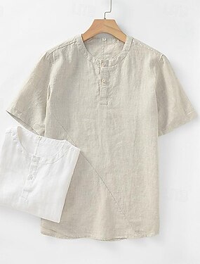Pánské Lněná košile Letní košile Oblečení na pláž Košile pro volný čas Košile s páskovým límečkem Pevná barva Ležérní Denní Černá Bílá Světle zelená Modrá Krátký rukáv Henley Léto Jaro Oblečení
