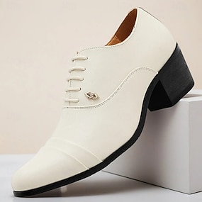 Pánské bílé klasické derby boty – formální obuv z umělé kůže, do kanceláře a na svatby, pohodlná společenská obuv