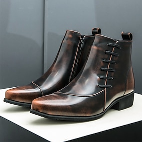 Pánské hnědé kotníkové boty z umělé kůže – klasické společenské boty na zip na zimu, pro obchodní a formální příležitosti