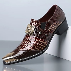 Pánské tmavě hnědé boty s páskem z umělé kůže – společenské boty s krokodýlím vzorem, vhodné pro obchodní, svatební a společenské příležitosti