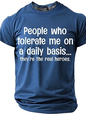Pánské „Lidé, kteří mě denně tolerují... jsou to skuteční hrdinové.“ Vtipné sebeironické tričko s grafikou, sarkastický vtip, citát, osobnost, tričko, ležérní, krátký rukáv, značkové oblečení,