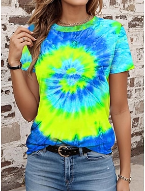 Dámské Tričko Vystřižený Tisk Batikované Módní Krátký rukáv Kulatý Běžné topy Denní Víkend Vodní modrá Světlá růžová Fialová Fialová Trávová zelená Léto
