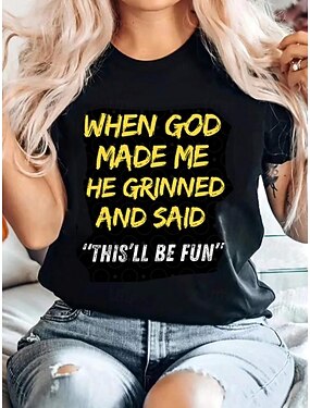 Dámské Tričko Tisk Grafika Písmeno stylové Na běžné nošení Krátký rukáv Kulatý Běžné topy Denní Víkend Černá Léto Jaro GOD