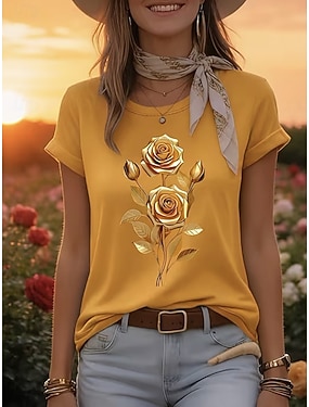 Dámské Tričko Tisk Květinový stylové Klasické Na běžné nošení Krátký rukáv Tričkový Kulatý Běžné topy Denní Vodní modrá Žlutá Trávová zelená Léto Jaro
