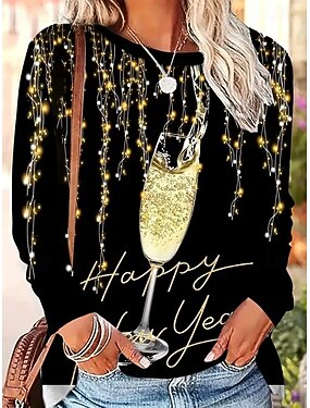 Nový rok Dámské Tričko Tisk Grafika Geometrický Vinobraní stylové Na běžné nošení Dlouhý rukáv Tričkový Kulatý Běžné topy Denní Víkend Vodní modrá Černá Námořnická modř Oranžová Zlatá Jaro Podzim Zima