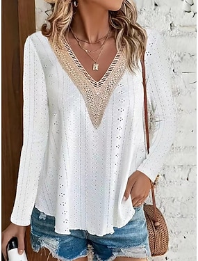 Dámské Halenka Krajka Slátanina Bez vzoru Aktivní Na běžné nošení Dlouhý rukáv Do V Běžné topy Denní Dovolená Jdeme ven Smaragdová zeleň Tmavě šedá Léto Podzim