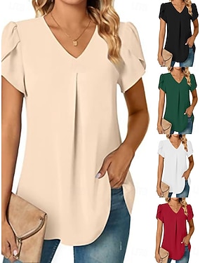 Dámské Tričko Tričko Top Volány Knoflíky Bez vzoru Módní stylové Klasické Krátký rukáv Do V Běžné topy Denní Jdeme ven Víkend Vodní modrá Černá Bílá Světlá růžová Khaki Léto Jaro