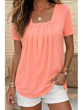 Dámské Halenka Pevná barva Vinobraní stylové Základní Krátký rukáv Hranatý Běžné topy Denní Vodní modrá Černá Bílá Světlá růžová Trávová zelená Léto Jaro