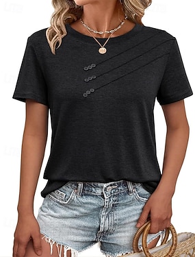 Dámské Tričko Letní vrcholy Slátanina Knoflíky Pevná barva Bez vzoru Elegantní Vinobraní Módní Krátký rukáv Tričkový Běžné topy Denní Jdeme ven Víkend Černá Bílá Fialová Khaki Léto Jaro
