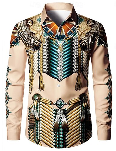 Pánské Peří Geleneksel Indická kultura Košile Košile na knoflíky Ležérní košile Dlouhý rukáv Vintage Retro Dovolená Denní Streetwear Léto Jaro Přehnutý 3D tisk košile s límečkem Khaki