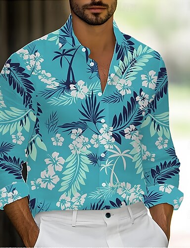 Pánské Tropické květiny Palmový list Košile Havajská košile Košile na knoflíky Dlouhý rukáv Havajské Dovolená Streetwear Léto Jaro Přehnutý 3D tisk košile s límečkem Vodní modrá Trávová zelená Světle
