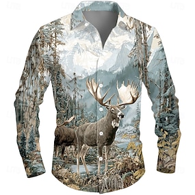 Pánské Sob Příroda a krajina Les Košile Košile na knoflíky Dlouhý rukáv Vintage Retro Venkovní Outdoor a turistika Lovecká Jaro Podzim Přehnutý 3D tisk košile s límečkem Vodní modrá Fialová