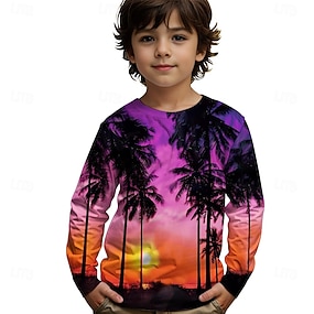 Chlapecké 3D Grafika Kokosový strom Tričko Košilky Dlouhý rukáv Jaro Podzim Módní Základní Děti 4-12 let Tričkový Venkovní Ležérní Denní Běžný