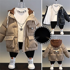 Děti Chlapecké Fleecová bunda Mikina s kapucí Svrchní oděvy Dětská bunda Puffer Jacket Písmeno Dlouhý rukáv Zip Kabát Venkovní Bavlna Rozkošný Denní Černá Khaki Jaro Podzim 7-13 let