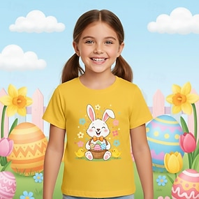 Dívčí velikonoční tričko s 3D potiskem a králíkem, krátký rukáv, 3D tisk, léto, jaro, sportovní, módní, streetwear, děti 4-12 let, kulatý výstřih, ležérní, denní, outdoor, standardní střih