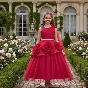 Šaty pro květinovou družičku Dívčí Formální šaty Svatební Oblečení Párty Svatební Formální Rozkošný Formální Krásná Slátanina Síťka Pevná barva Bez rukávů Tričkový Vodní modrá Světlá růžová 4 roky +