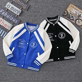 Děti Unisex Baseballové bundy Svrchní oděvy Barevné bloky Dlouhý rukáv Pohodlné Knoflíky Měkké Kabát Venkovní Bavlna Módní Denní Černá Jaro Podzim 4 roky +