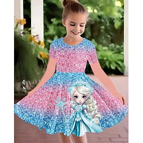 Girls ' 3D Komiks Šaty Krátký rukáv Léto Jaro Dovolená Denní Princeznovské Krásná Sladký Děti 4-12 let Volnočasové šaty Áčkové šaty Délka ke kolenům Běžný