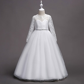 Šaty pro květinovou družičku Dívčí Formální šaty Svatební Oblečení Párty Svatební Formální Rozkošný Princeznovské Krásná Šaty na první přijímání Slátanina Síťka Pevná barva Dlouhý rukáv Tričkový
