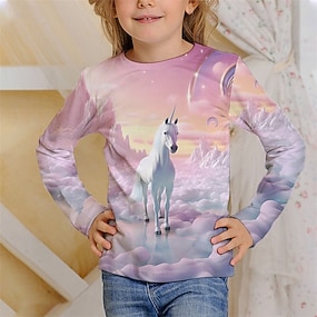 Dívčí 3D Jednorožec Tričko Košilky Dlouhý rukáv Jaro Podzim Módní Základní Děti 4-12 let Tričkový Venkovní Ležérní Denní Běžný