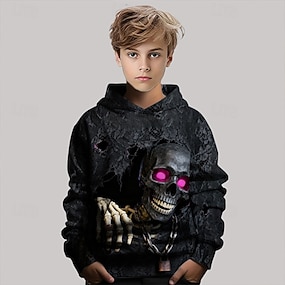 předvečer Všech svatých Chlapecké 3D Grafika Lebky Kapuce Dlouhý rukáv Jaro Podzim Módní Šik ven Děti 4-12 let Kapuce Venkovní Ležérní Denní Běžný