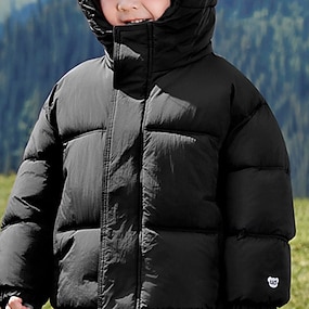 Děti Unisex Péřová bunda Venkovní bunda Puffer Jacket Svrchní oděvy Pevná barva Dlouhý rukáv Zahřívací Větruodolné Kabát Venkovní Denní Základní Černá Rubínově červená Trávová zelená Podzim Zima 4