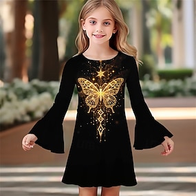 Girls ' 3D Motýl Květiny Šaty Dlouhý rukáv Léto Jaro Dovolená Denní Princeznovské Krásná Sladký Děti 4-12 let Volnočasové šaty Áčkové šaty Délka ke kolenům Běžný