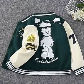 Děti Unisex Baseballové bundy Svrchní oděvy Písmeno Dlouhý rukáv Zip Kapsy Pohodlné Měkké Kabát Venkovní Módní Denní Černá Trávová zelená Jaro Podzim 4 roky +