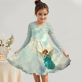 Girls ' 3D Grafika Šaty Dlouhý rukáv Léto Jaro Dovolená Denní Princeznovské Krásná Sladký Děti 4-12 let Volnočasové šaty Áčkové šaty Délka ke kolenům Běžný