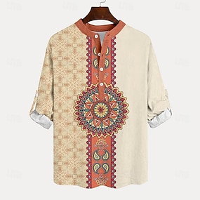 Pánské Geleneksel Košile Košile na knoflíky Tričko Henley Dlouhý rukáv Vinobraní Na běžné nošení Africký vzor Dovolená Denní Plážové Léto Zima Jaro & podzim Stojáček Tlačítko nahoru 3D tisk Světle