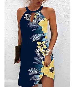Dámské Letní šaty Šaty s ohlávkou ke krku Šaty s potiskem Aktivní Módní Šik ven Venkovní Dovolená Denní Běžný Kašmírový vzor Bez rukávů Krk ohlávky Žlutá Královská modř Vodní modrá Tmavomodrá Léto